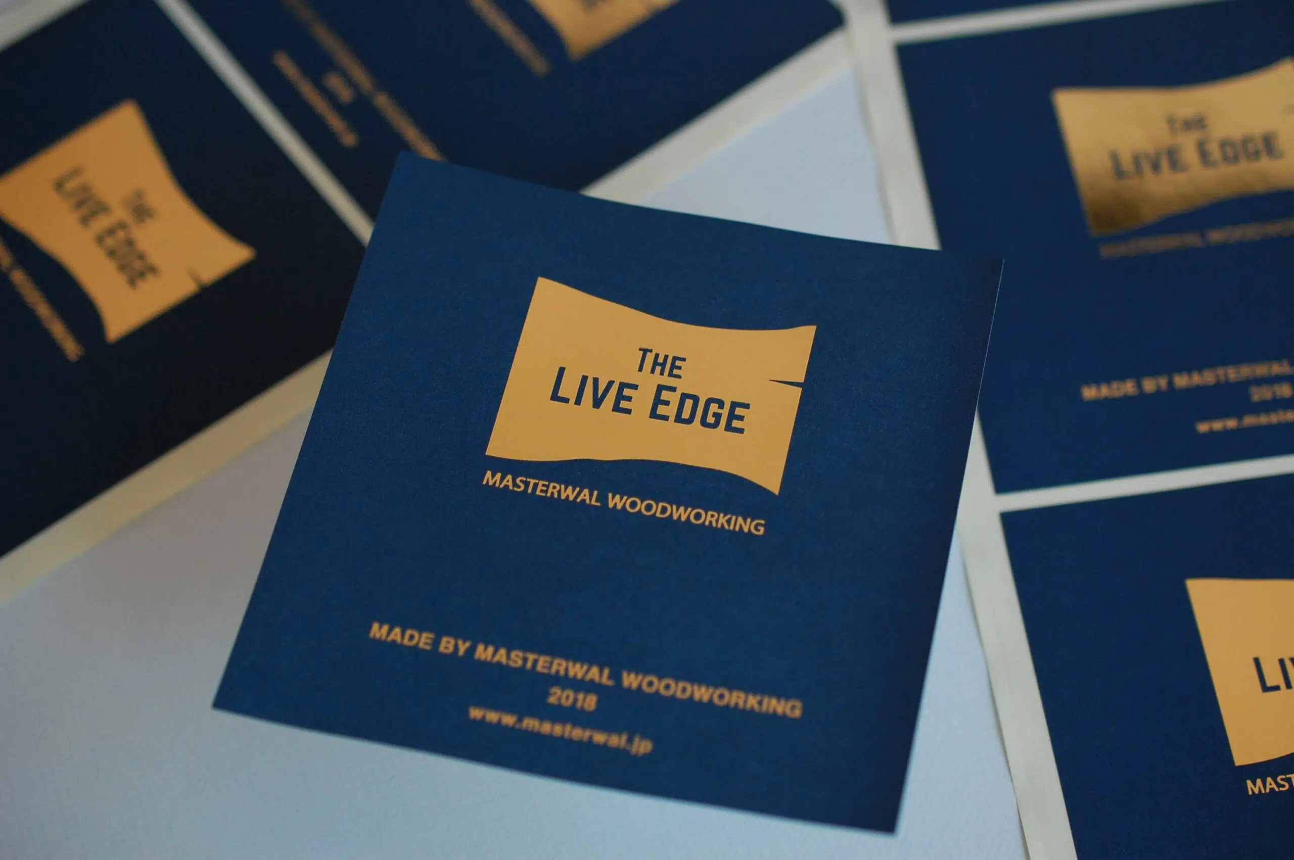 素材は紙特有の質感をもつ上質55kgを提案しました。箔押しは村田金箔製OG3の金の箔押しを施しております。一般的な金ですが背景のネイビーのとても合っていました。仕上がりはシートカットになります。シートカットは台紙がシールより大きくなっている為、貼付がしやすく便利です。