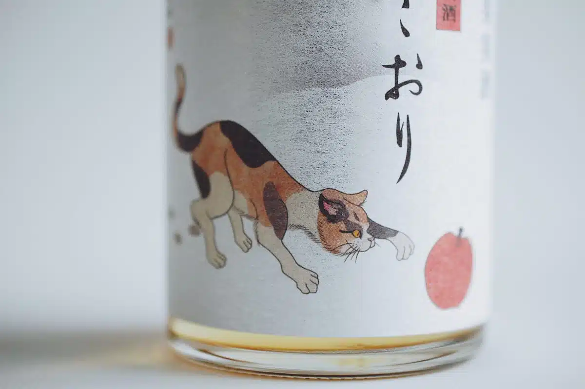 果実酒、「さえこおり」のラベルを制作しました。こちらのラベルのタック紙は、「和紙銀がすみ」を提案させてもらいました。和紙銀がすみは、その名の通り和紙の隙間から銀色が垣間見れる特殊な素材です。粘着は水溶強粘着になります。印刷は素材のうっすらとした銀を生かし、白は引かずに直接オフセット印刷にて4色カラーを刷りました。