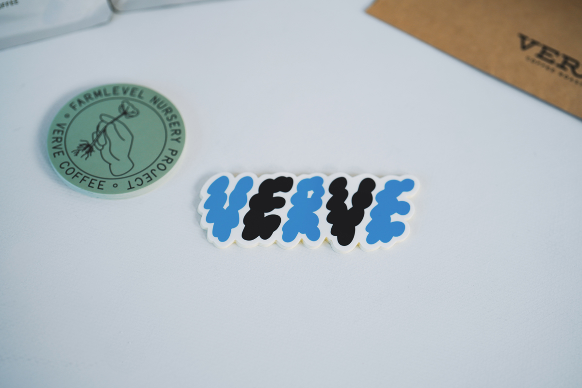 ヴァーヴコーヒーロースターズさんのステッカーの制作です。変形と丸型の2種類あります。デザインを確認しお勧めの素材を提案して欲しいとの事でした。販売用に作るので素材への耐久性は高いモノをご希望でした。また、丸型は両面印刷になります。裏面にヴァ―ヴさんのプロジェクトの説明とQRコードを印刷して欲しいとの事でした。